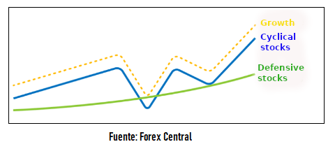 Las acciones defensivas corresponden a aquellas compañías con negocios consolidados que tienen ingresos predecibles y les permiten distribuir parte de sus ganancias como dividendos. Suelen ser negocios más resilientes a la coyuntura económica, debido a que las personas tienen necesidades imprescindibles relacionadas con los productos que estas empresas ofrecen: energía, protección de la salud, alimentos, productos de higiene, entre otros.