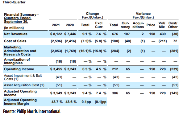 -Considerando un escenario inflacionario como el actual, donde muchas compañías están lidiando con el incremento de sus costos, PM logró manejar el incremento de sus costos para mantener su margen operativo en torno al 43,7%.
