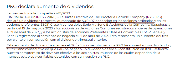 The Procter & Gamble Company (PG), por ejemplo, es una compañía que distribuye el 60% de sus beneficios como dividendos en efectivo.