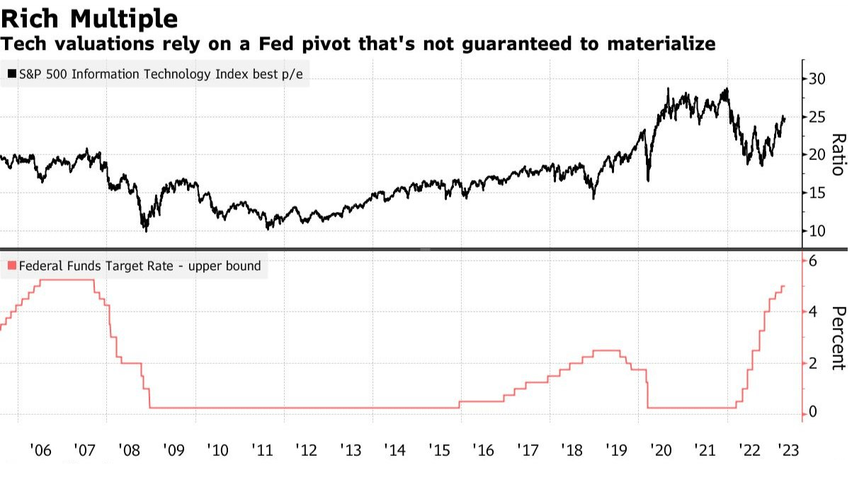 Si observamos las valoraciones de las acciones tecnológicas, pareciera que el inversor está dispuesto a pagar el mismo precio por una compañía con tipos de interés al 0%, que al 5%.