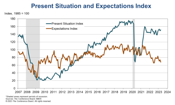 De hecho, el índice de confianza del consumidor que elabora Conference Board, volvió a caer en abril y el índice de expectativas se mantiene por debajo de 80 (lo que manifiesta la entrada en recesión en 2024).