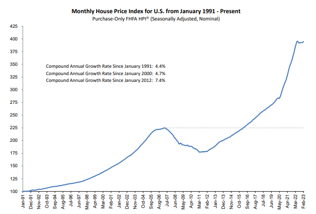 Según el índice de precios que elabora la Agencia Federal de Financiamiento de la Vivienda, los precios aumentaron un 0,5% mensual en febrero y un 4% interanual.