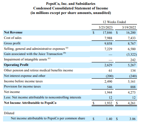 Hoy le tocó el turno a uno de sus principales competidores: PepsiCo, Inc. (PEP).