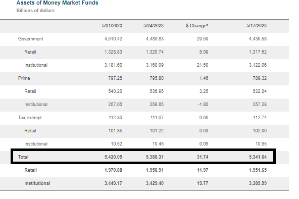 Como resultado, los fondos de mercado monetario alcanzaron un nuevo récord de 5,42 billones de dólares.
