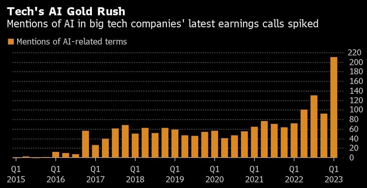 Este fenómeno se reflejó en los informes de ganancias de importantes empresas tecnológicas durante el primer trimestre, donde las menciones de IA superaron las 200, en comparación con menos de 100 en el trimestre anterior.
