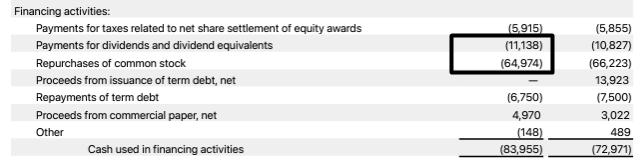 Sin embargo, entre los dividendos distribuidos y las recompras de acciones propias, Apple liberó más de USD 76.000 millones al accionista.