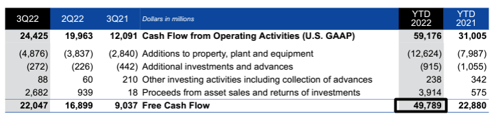 En lo que va de 2022, Exxon generó un flujo de caja libre para los accionistas de USD 49.800 millones.