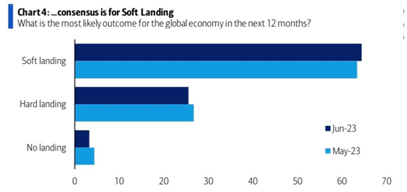 Un 64% de los gestores cree que la economía global experimentará solo un “aterrizaje suave” en los próximos doce meses.