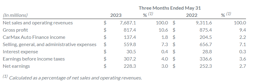 CarMax registró una facturación de 7.700 millones de dólares, lo que representa una disminución del 17,4% en comparación con el mismo período del año anterior.