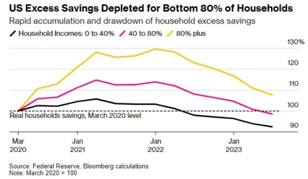 Según Goldman Sachs, el exceso de ahorro se agotó en el 80% de la población estadounidense.
