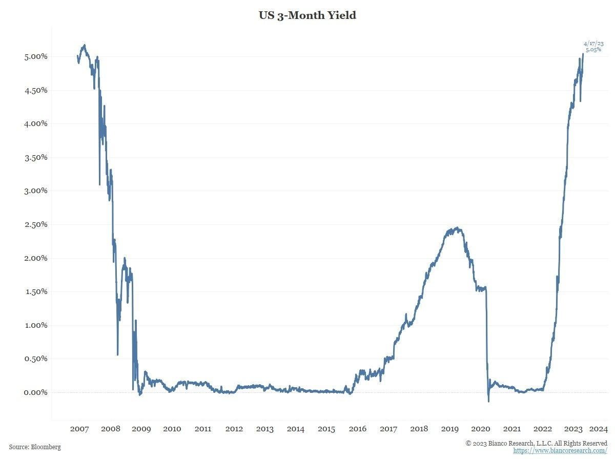 Hoy, un bono soberano de Estados Unidos a tres meses de plazo, proporciona un rendimiento del 5,05%.