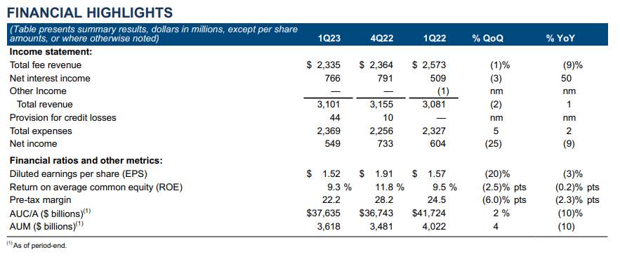 STT reportó ingresos por USD 2.335 millones (+1% interanual) y beneficios de USD 549 millones o el equivalente a USD 1,52 por acción (-3% interanual).