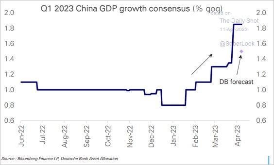 Además, el consenso de los analistas ahora espera un mayor crecimiento del producto interno bruto de China para el primer trimestre de 2023.