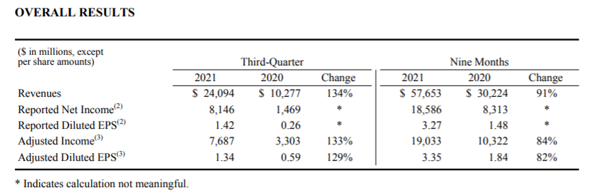 Hoy, PFE informó los números del tercer trimestre de 2021. Sus ingresos fueron de USD 24.094 millones (+134% interanual) y sus beneficios de USD 7.687 millones (+133% interanual). Asimismo, incrementó sus proyecciones para todo 2021. Espera obtener ingresos de entre USD 81.000 y USD 82.000 millones, y ganar entre USD 4,13 y USD 4,18 por acción.
