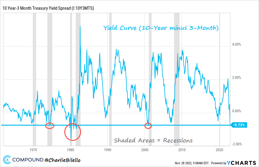 Este es el único indicador fiable capaz de predecir una recesión con un alto grado de acierto. La curva invertida predijo las últimas ocho recesiones en Estados Unidos.