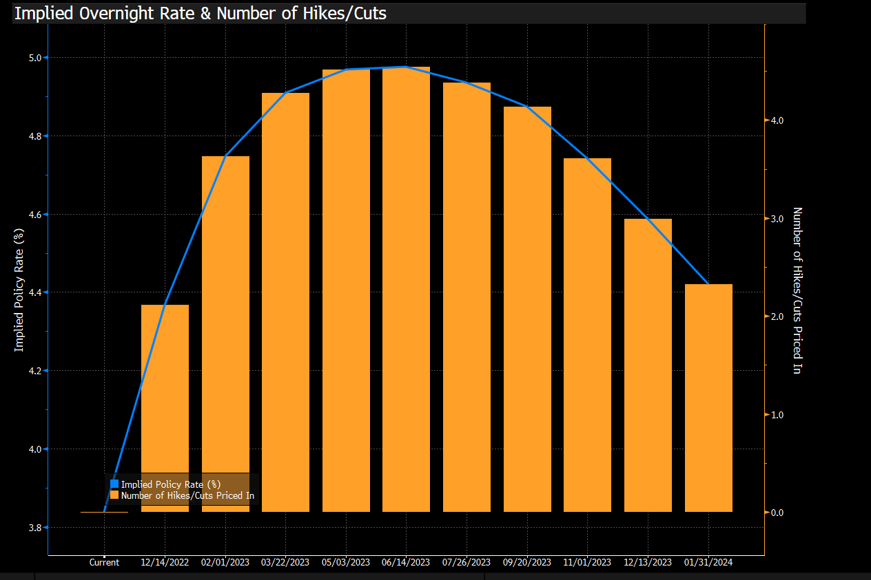 Powell sigue negando el “pivote”, pero los inversores no le creen. El mercado descuenta que comenzarán los recortes de tipos de interés en 2023.