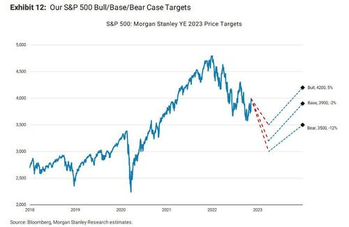 Morgan Stanley prevé un escenario bastante pesimista para 2023. La entidad cree que, en el mejor de los casos, el S&P500 subirá un 5% de los niveles actuales. En el peor escenario, podría caer un 12% adicional.