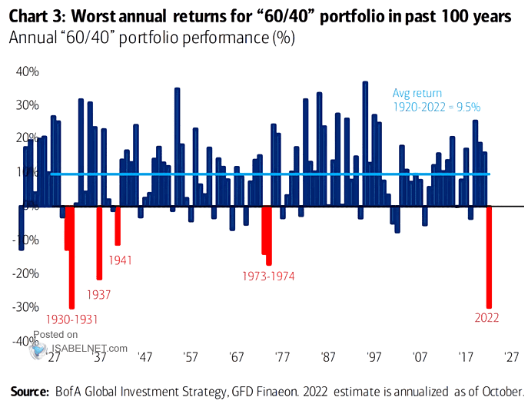 El peor retorno del portafolio “60/40” en los últimos 100 años Fuente: BofA
