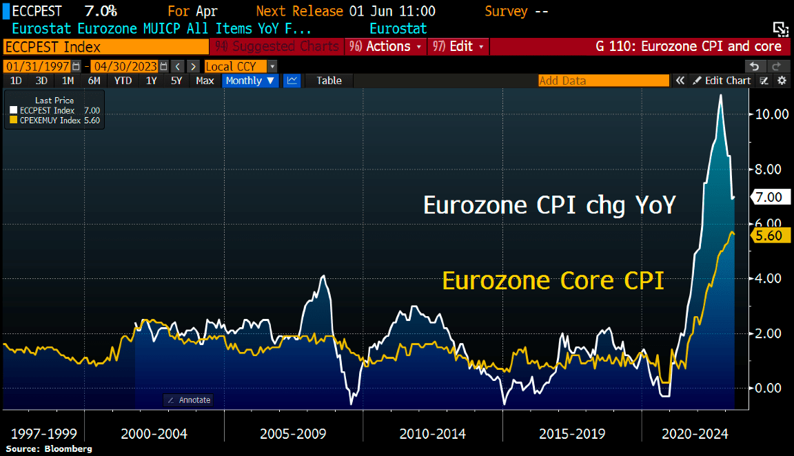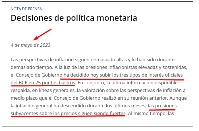 En definitiva, Europa tiene la tasa de interés en el 3,25%, cuando la inflación subyacente está anclada en el 5,6%.