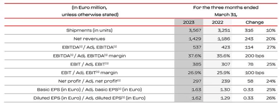 En el primer trimestre del ejercicio fiscal 2023, la compañía informó ingresos por EUR 1.429 millones (+20% interanual).