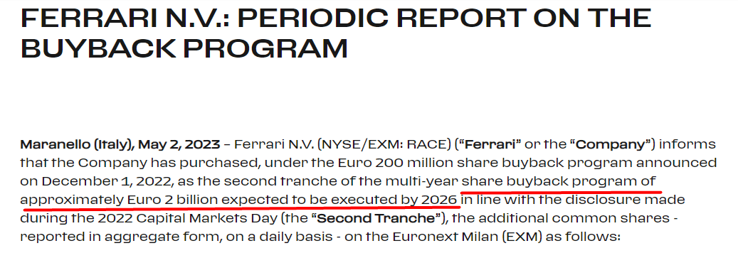Para todo 2023, Ferrari espera generar EUR 5.700 millones de ingresos y beneficios de entre EUR 6,00 y EUR 6,20 por acción.