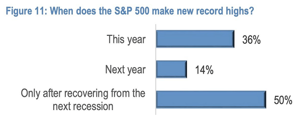 El 14% de los encuestados considera que los nuevos máximos históricos se lograrán en 2024, mientras que el 50% opina que sólo ocurrirá después de que llegue la próxima recesión.