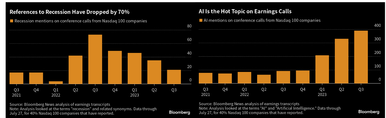 Según un relevamiento de Bloomberg, las empresas están mencionando menos la palabra “recesión” en sus llamadas de ganancias.
