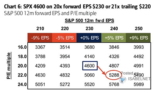 Bank of America diseñó diferentes escenarios para el S&P500, basados en las perspectivas de crecimiento de los beneficios corporativos y los precios objetivo con distintos múltiplos de valoración.
