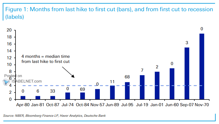 En promedio, han transcurrido cuatro meses desde la última subida hasta el primer recorte. Sin embargo, en cada recesión, los tiempos han sido bastante diferentes y es posible que también lo sean en esta ocasión.