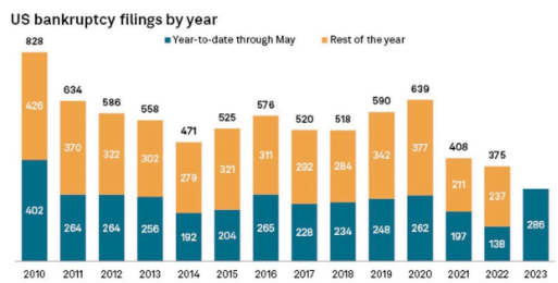 Según el último informe de S&P Global, este año se presentaron un total de 286 solicitudes de bancarrota.