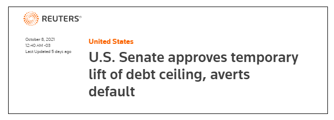 El problema del límite de la deuda estadounidense era una de las principales amenazas del mercado. Sin embargo, los demócratas y republicanos acordaron una tregua para incrementar en USD 480.000 millones el techo de la deuda, lo que le permite al Gobierno Federal evitar el incumplimiento de sus obligaciones en el corto plazo. No obstante, solo será por dos meses, hasta el 3 de diciembre de este año. Es probable que la disputa por el límite de la deuda continúe, y la incertidumbre de los inversores también.