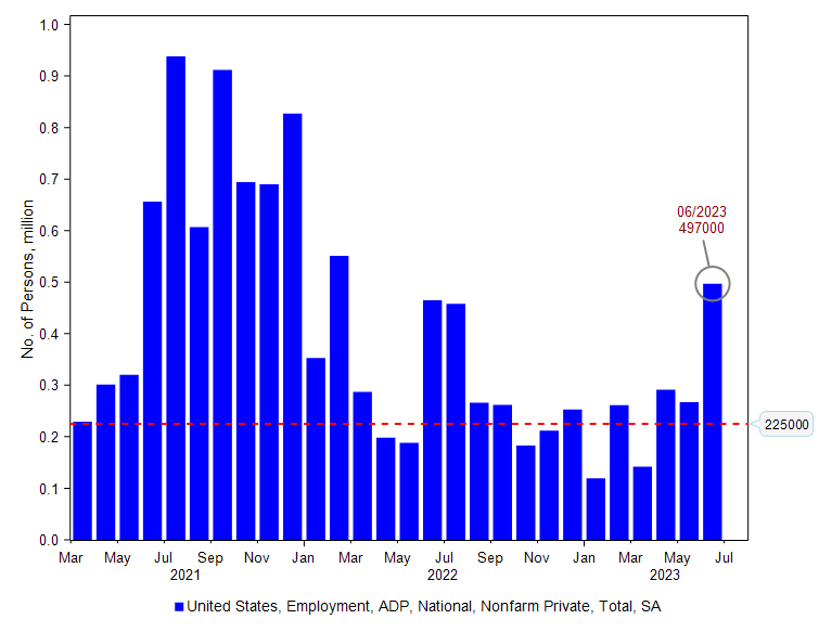 En junio, Estados Unidos generó un total de 497.000 empleos en el sector privado, más del doble de las proyecciones iniciales.
