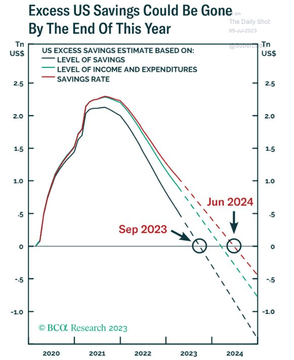 Según BCA Research, se espera que este exceso de ahorro se agote en un futuro cercano.