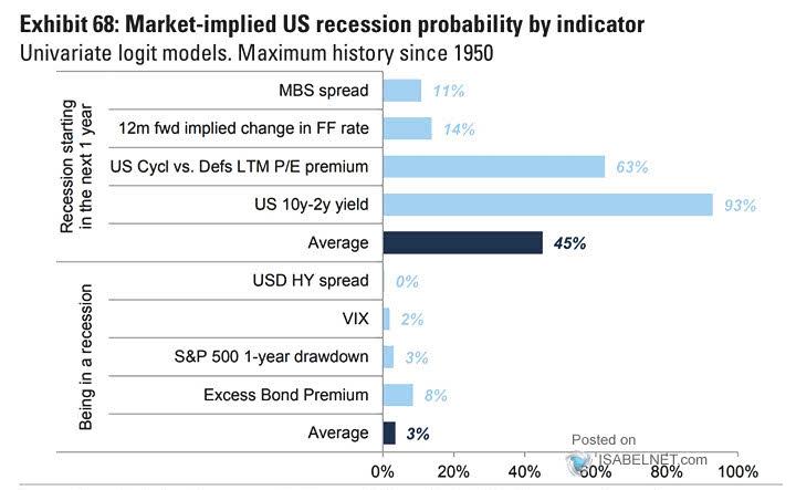 Según el modelo de la reconocida firma Goldman Sachs, que combina un promedio de estas variables, la probabilidad media de que Estados Unidos entre en una recesión el próximo año es del 45%.