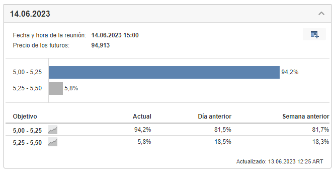 Según las probabilidades implícitas en el mercado de bonos, en este momento hay un 94% de probabilidad de que la tasa de interés se mantenga en su nivel actual.