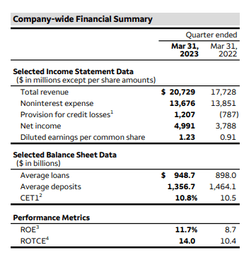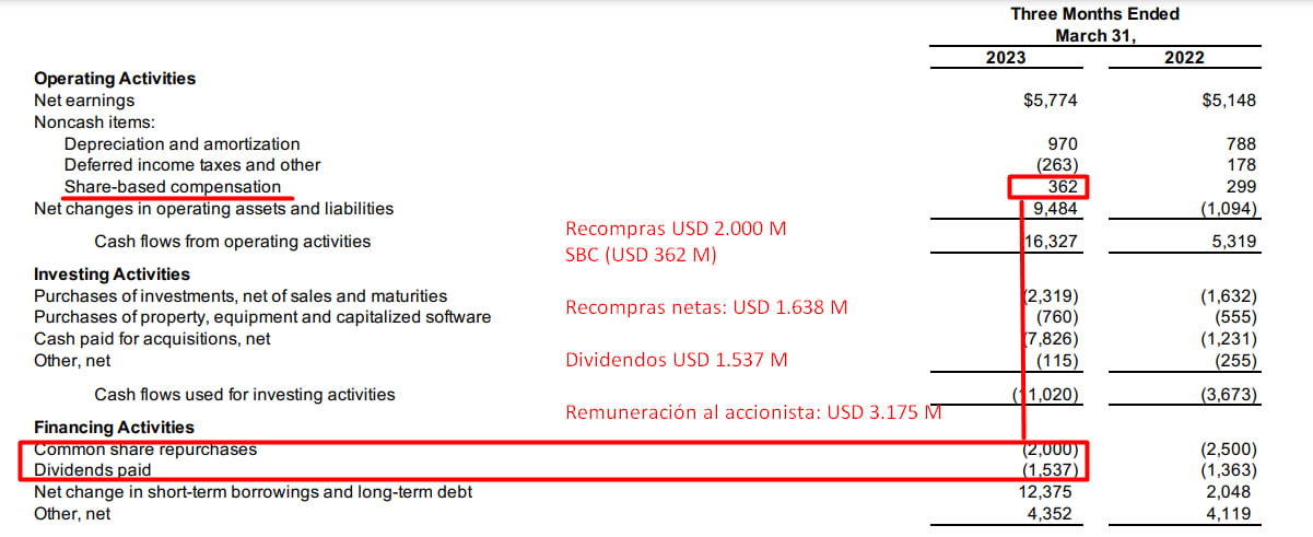 En el primer trimestre de 2023, generó ingresos por USD 91.931 millones (+15% interanual) y beneficios por USD 5.774 millones o el equivalente a USD 5,95 por acción (+13% interanual).